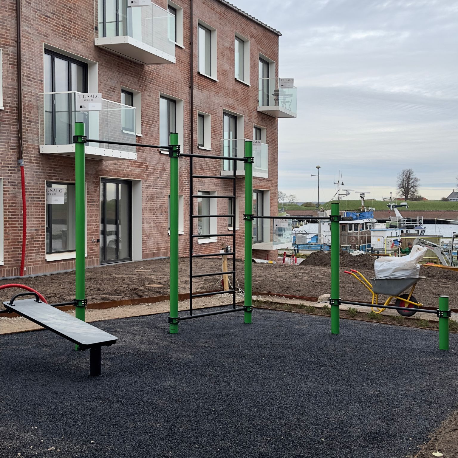 Resultatet er et moderne, bæredygtigt og brugbart uderum, der løfter det nybyggede område og giver beboerne et grønt mødested, hvor ophold og leg går hånd i hånd.