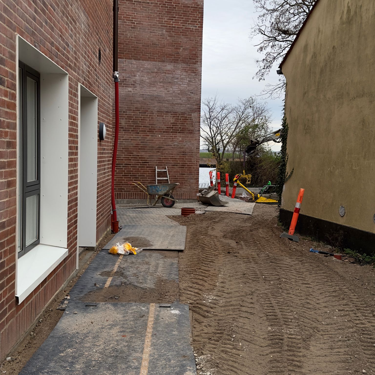 Når gårdspladsen står færdig, bliver den et samlingspunkt for beboerne – et sted, hvor børn kan lege trygt, og voksne kan mødes i et miljø, der føles både grønt og bynært.